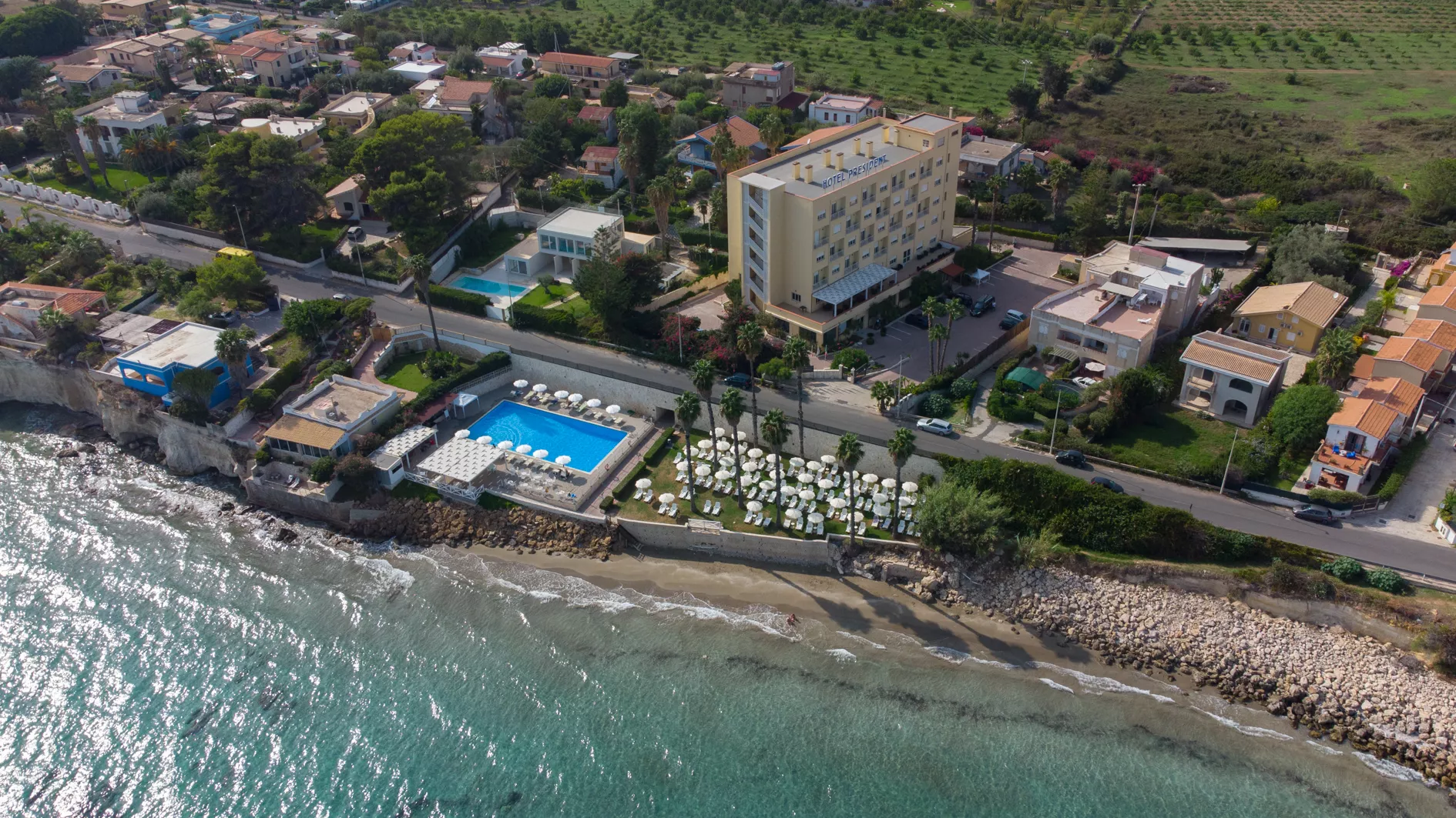 Hotel President Sea Palace is located in Noto Marina, in a strategic seafront position, surrounded by a natural setting that blends golden beaches, crystal clear waters, and the charm of Sicily’s south eastern coast.