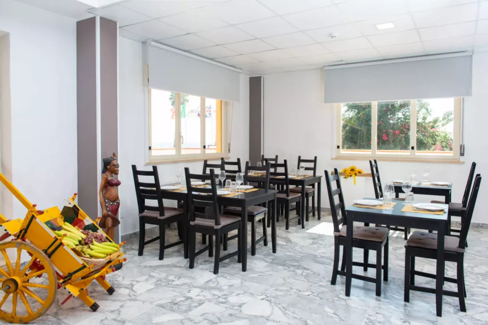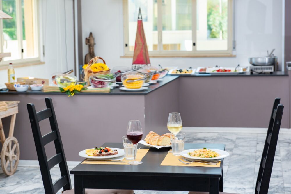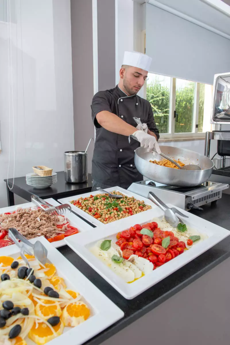 The main restaurant welcomes guests with a generous buffet featuring Italian cuisine and regional specialties, all prepared with fresh, high-quality ingredients.